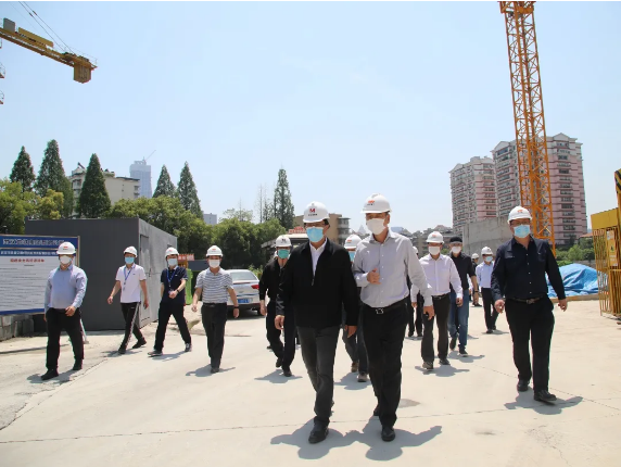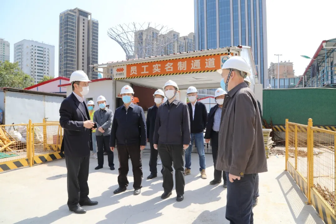 4月29日上午,武漢地鐵集團(tuán)董事長(zhǎng)、黨委書(shū)記張軍一行實(shí)地考察武漢建工集團(tuán)承建的武漢市軌道交通8號(hào)線趙家條配套綜合開(kāi)發(fā)項(xiàng)目一期工程,并召開(kāi)座談會(huì),了解項(xiàng)目疫情防控及復(fù)工復(fù)產(chǎn)情況。集團(tuán)董事長(zhǎng)、黨委書(shū)記應(yīng)志剛,集團(tuán)總經(jīng)理、黨委副書(shū)記王火生,集團(tuán)黨委副書(shū)記、紀(jì)委書(shū)記、總工程師王愛(ài)勛,股