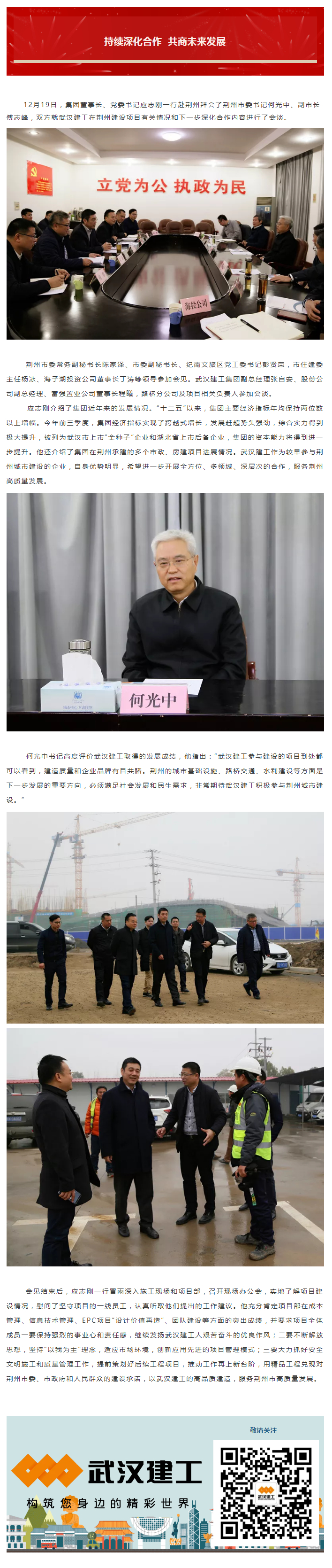 【持續(xù)深化合作 共商未來發(fā)展】武漢建工集團(tuán)董事長、黨委書記應(yīng)志剛拜會荊州市委、市政府主要領(lǐng)導(dǎo)