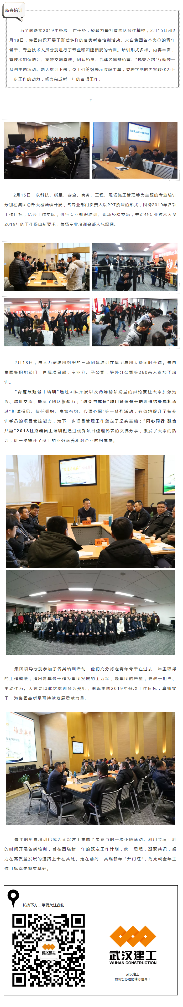 2月18日,武漢建工集團(tuán)召開2019年經(jīng)營工作會(huì)議。會(huì)議全面總結(jié)了2018年經(jīng)濟(jì)工作,分析當(dāng)前經(jīng)營形勢(shì),安排部署2019年經(jīng)濟(jì)工作,動(dòng)員集團(tuán)上下凝心聚力,為實(shí)現(xiàn)2019年工作目標(biāo)而努力奮斗。