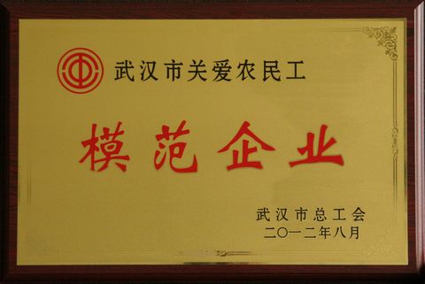 2012年8月28日,在武漢市總工會召開的武漢市職工服務(wù)中心建設(shè)推進會上,一批業(yè)績突出的優(yōu)秀農(nóng)民工和一批關(guān)愛農(nóng)民工的模范企業(yè)受到了表彰。武漢建工在關(guān)心、愛護和尊重農(nóng)民工方面作了積極努力,被授予武漢市關(guān)愛農(nóng)民工模范企業(yè);來自中澤勞務(wù)公司的芳卉園項目部泥工班長易立軍被授予武漢市十佳農(nóng)民工,授予武漢五一勞動獎?wù)拢粊碜孕⒏写笈d勞務(wù)公司的武昌工人文化宮項目部木工班長夏壽明被授予武漢市優(yōu)秀農(nóng)民工。
